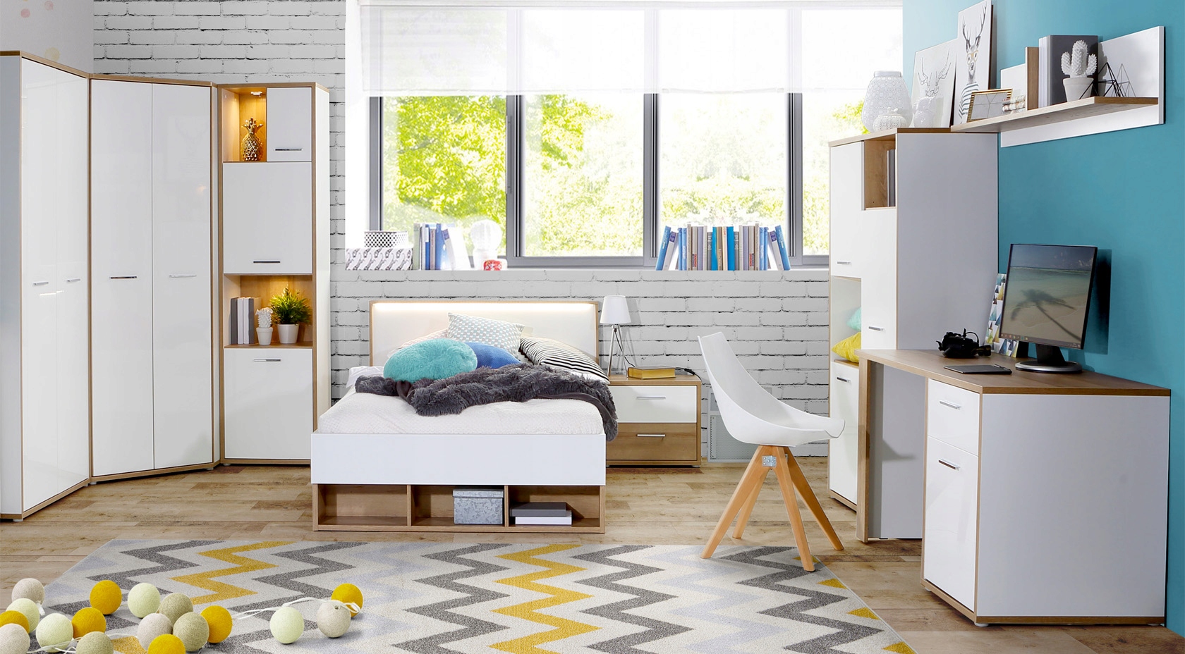 Универсальность – одна из самых важных и желательных особенностей каждой коллекции мебели. Количество элементов семейства ЦИКОРИЙ позволяет легко обустроить детскую комнату. Кроме того, мы добьемся единообразного единого стиля. Также обращает на себя внимание геометрия – простые, утонченные формы. Благодаря им мебель не перегружает интерьер и слегка отсылает к современному минимализму. Плюс – давайте просто посмотрим! –Элегантность в каждой детали.