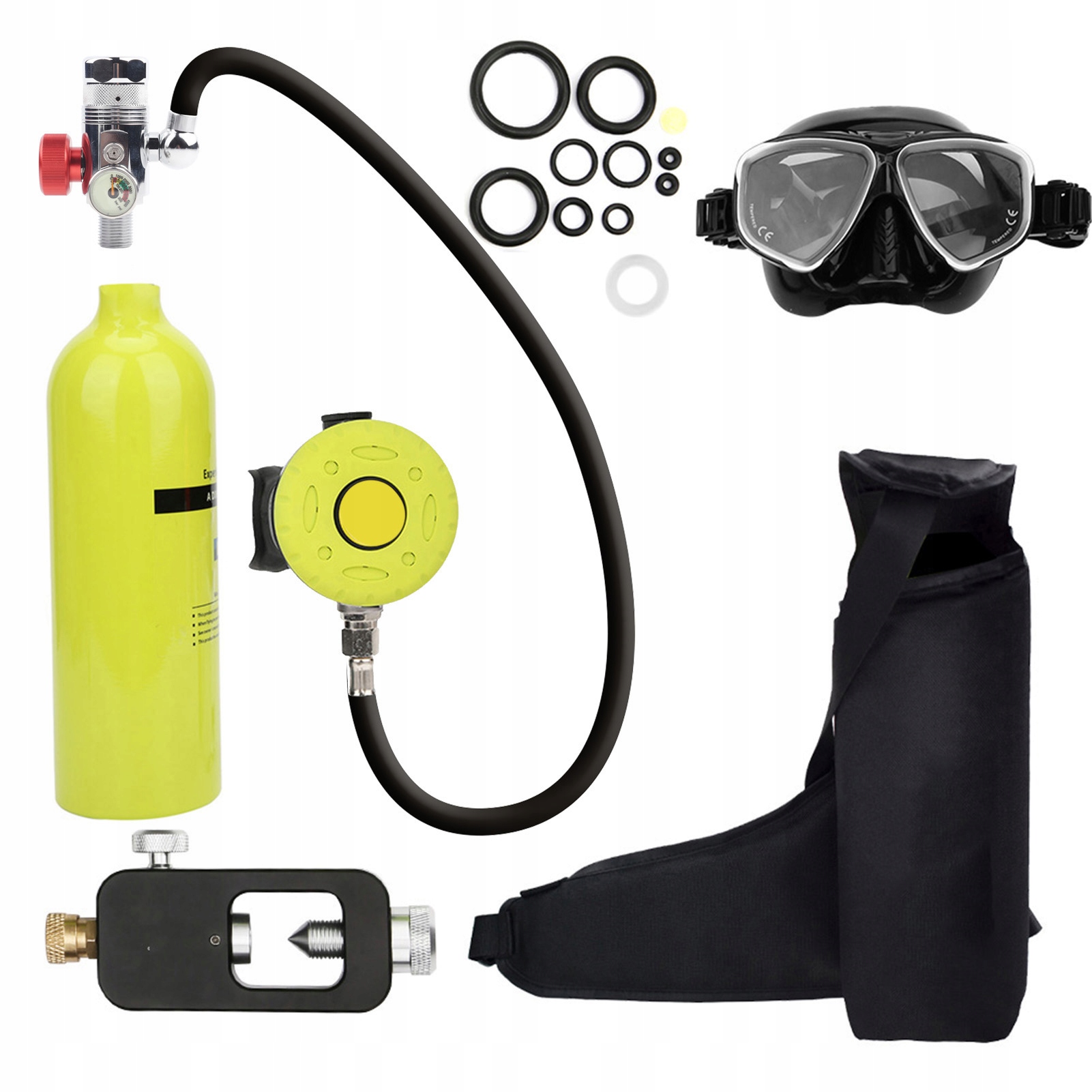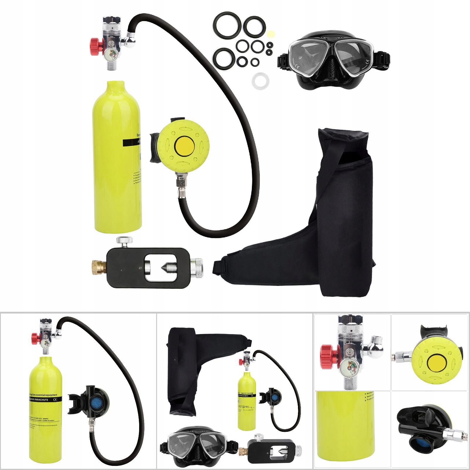 Портативный подводный дыхательный аппарат 1 л, баллон для дайвинга, кислородный баллон для подводного плавания, комплект снаряжения для дайвинга, флуоресцентный зеленый цвет