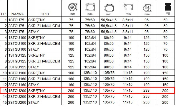 Круглый набор, прикрепленный к пластине, с кодом 1stGU200 , в таблице под пунктом 13.