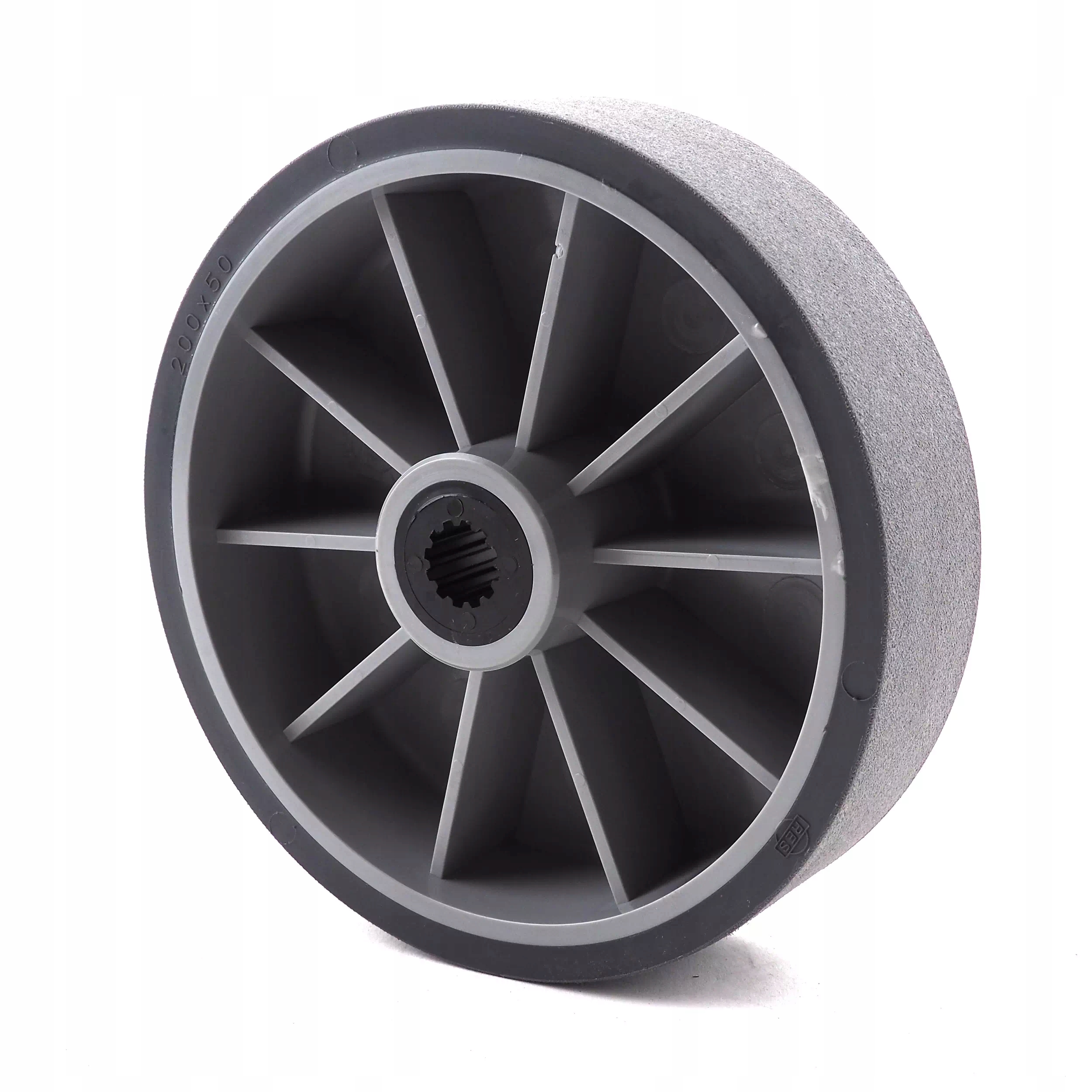 <р> Тип: Оригинал <р> Тип: Шлицевое ведущее колесо <р> Диаметр колеса (D1): 200 мм <р> Ширина колеса (W1): 50 мм <р> Диаметр вала (D8): 17 мм <р> Материал: Резина <р> Профиль: ПротивоскользящийОПИСАНИЕ: