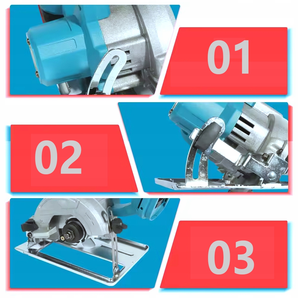 ✔️Полукруглый защитный чехол обеспечивает лучшую защиту от пыли и древесной стружки. Циркулярную пилу можно подключить к пылесосу для резки без пыли.