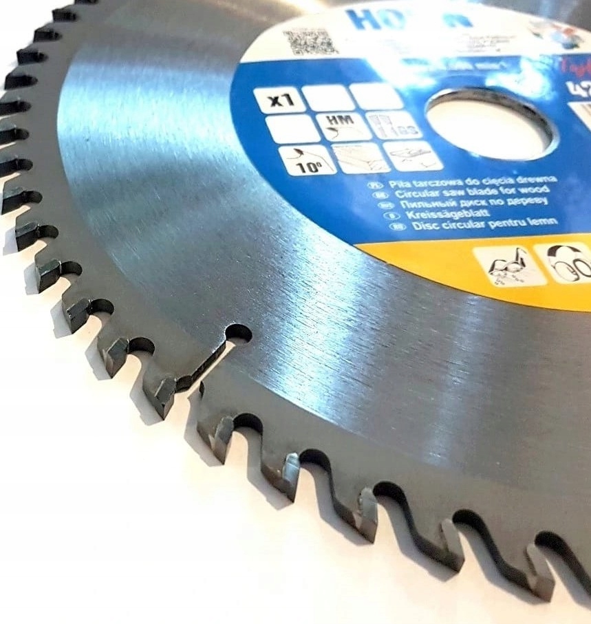 Высококачественная пила по дереву, пила из термически улучшенной углеродистой стали (металлический диск) и карбида вольфрама YG8 (режущие зубья) с твердостью полотна 85°HRc (+/-2°). Геометрия лезвия GS с передним углом 10°. Металлический диск, вырезанный лазером, обеспечивает высокую жесткость пилы. Специальный спеченный твердый сплав HM гарантирует длительный срок службы зубьев и позволяет многократно затачивать их. Правильно подобранная геометрия полотна и форма пластины GS10 (попеременно скошенная) позволяют добиться оптимального качества обработки при распиле древесины поперек волокон.
