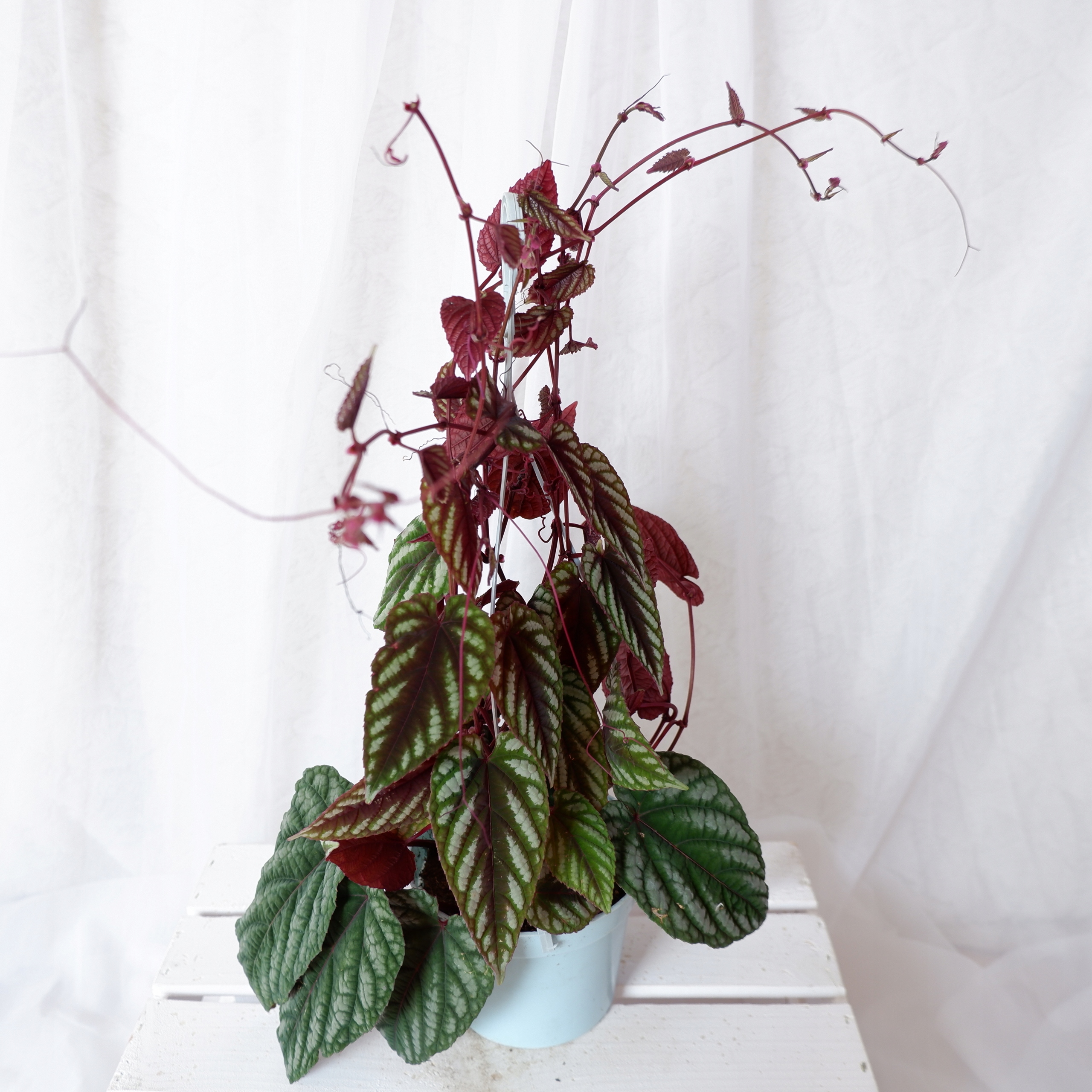 Циссус пестрый (циссус пестрый) родом с Явы, где образует высокорослые лианы с темно-красными побегами. Большие, сердцевидные, продолговатые, блестящие листья сверху пурпурно-фиолетовые, между жилками серебристые, снизу темно-красные. Он очень декоративен. Быстро растет в теплых и влажных помещениях. На старых растениях могут появиться маленькие желтые цветки.