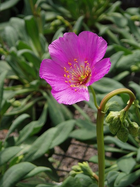 разнообразие яркости поступает из Чили, а также растет в Австралии. Это вечно зеленое, многолетнее многолетнее многолетнее многолетнее время, представленное в рок -кролике. Серебряный-зеленый, эллиптические, острые листья с широкими хвостами, тонкие стебли длиной 60-80 см. Цветы-кармина-розовые, широкие 5-8 см, собраны в верхней части разветвленных стеблей. Это расцветает с середины -и лета. Цветы порталаки открываются только в солнечные дни, цветочные побеги растут примерно до 30 см в высоту. Растение идеально подходит для посадки в контейнерах и для скидков в скале.
