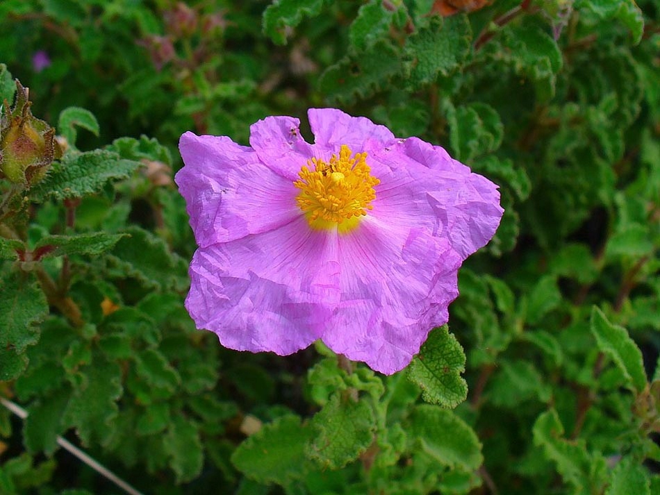 Вечнозеленый компактный кустарник родом из Южной Европы. Цветет весной цветами от розового до фиолетового. Цистус достигает высоты 60-100 см. Благодаря широкому спектру применения критский ладанник становится все более культивируемым растением. Это растение является источником смолы лабданума, используемой в парфюмерии в качестве заменителя амбры.