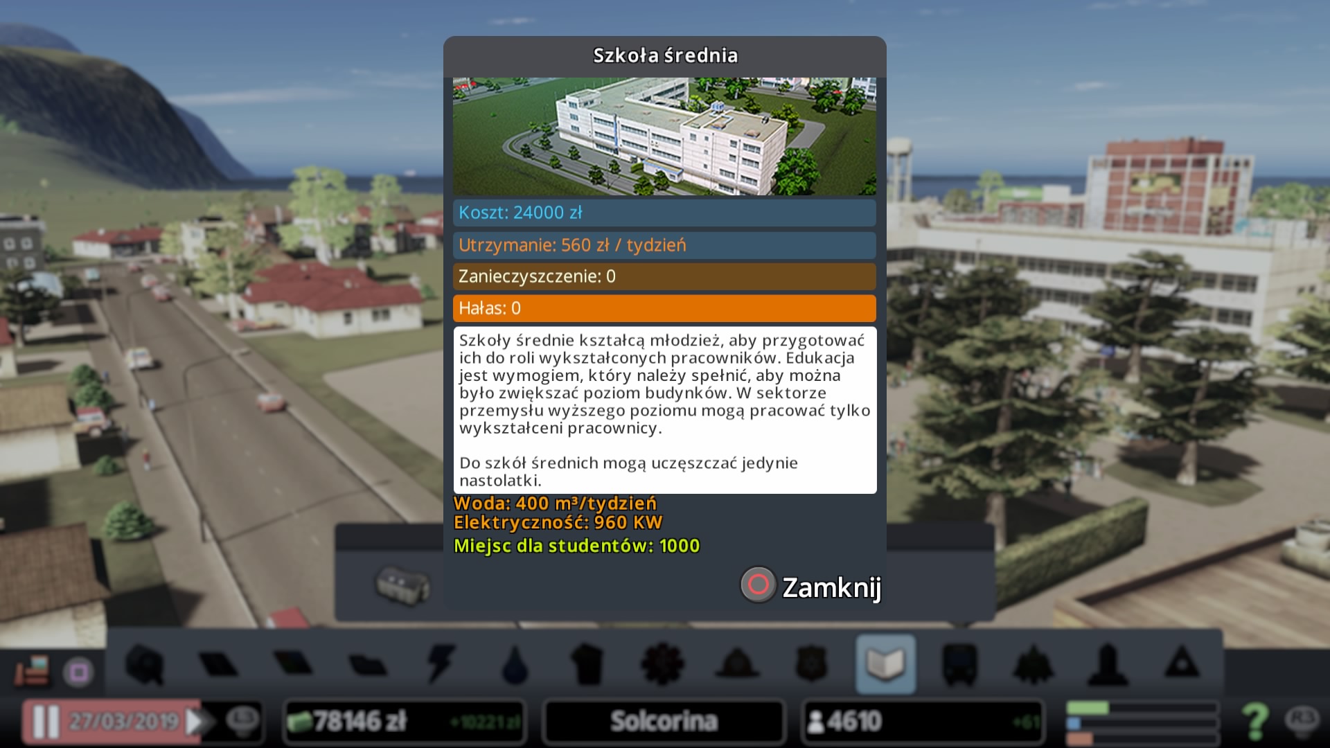 В игре мы строим мегаполисы на картах площадью 36 квадратных километров, хотя есть возможность неофициально увеличить этот размер. Чтобы заполнить всю территорию зданиями и дорогами, мы должны позаботиться, среди прочего: для эффективной работы системы городского управления и постоянного притока денежных средств, полученных от налогов. Однако следует помнить, что в разных районах нашей агломерации проживают разные социальные классы. Поэтому сумма собранных денег должна зависеть от финансовых возможностей жителей. К счастью, создатели позволят вам точно определить размер налогов и виды полисов для отдельных территорий. Кроме того, вам необходимо позаботиться о строительстве общественного транспорта, благодаря которому виртуальные люди смогут передвигаться по всему мегаполису. Установление торговых связей с другими городами также является важным аспектом.