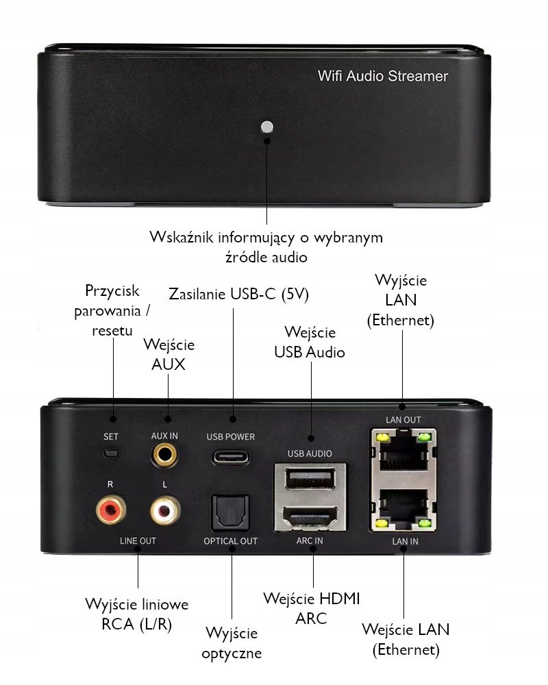 CL-BOX Pro — это инновационный аудиоресивер для потоковой передачи музыки через Wi-Fi, который позволяет превратить активные колонки, звуковые панели и колонки домашнего кинотеатра в беспроводную систему потоковой передачи музыки. Поддерживает локальную сеть, беспроводное соединение Wi-Fi и Bluetooth. Он имеет вход ARC TV, USB, AUX, оптический выход, линейное аналоговое стерео. Поддерживает протоколы Airplay и DLNA. Он был разработан с учетом мобильности и небольших размеров, занимая мало места. Он предлагает самое простое и удобное решение для потоковой передачи музыки. Вы можете наслаждаться высококачественной потоковой передачей музыки без потерь по беспроводной сети в нескольких комнатах.