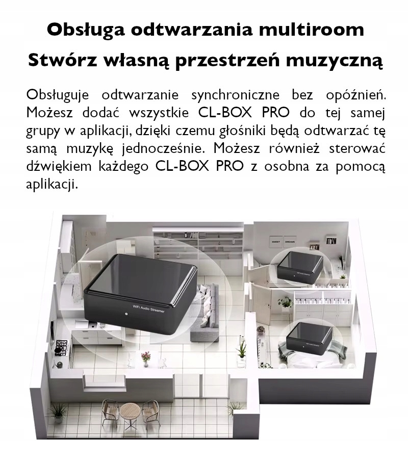 Одной из ключевых особенностей Cloudyx CL-BOX Pro является функция многокомнатного воспроизведения. Это означает, что вы можете одновременно воспроизводить одну и ту же музыку в разных комнатах вашего дома или разные песни в каждой комнате, и все это контролируется через интуитивно понятное приложение. Эта функция превращает ваш дом в гармоничную, подключенную аудиоэкосистему. Устройство было разработано для легкой интеграции в существующую стереосистему, позволяя подключаться к усилителю или активным колонкам через стандартные аудиовыходы. Компактный и незаметный формат позволяет ему легко вписаться в любую аудиосистему.
