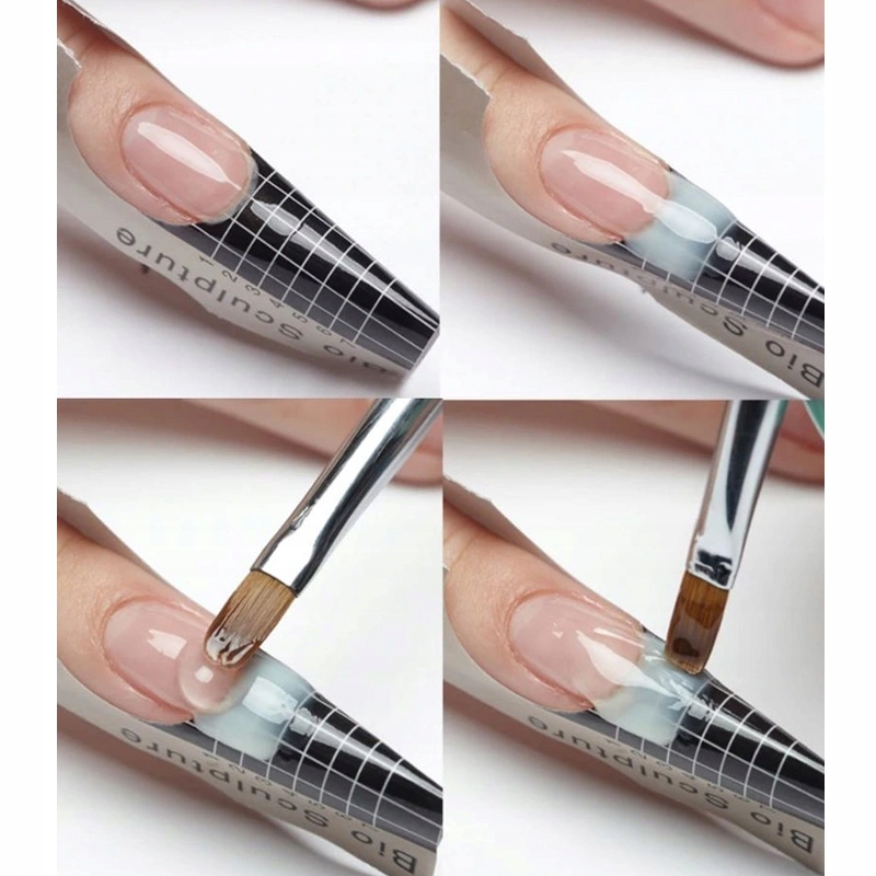 Вот как выполнить процесс наращивания ногтей гелем по бумажным шаблонам:
