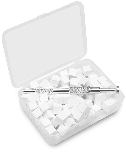 - Ombre Puffs – набор из 100 штук маленьких, мягких, квадратных спонжей, которые идеально набирают и равномерно распределяют средство, создавая плавные переходы без полос и пятен.