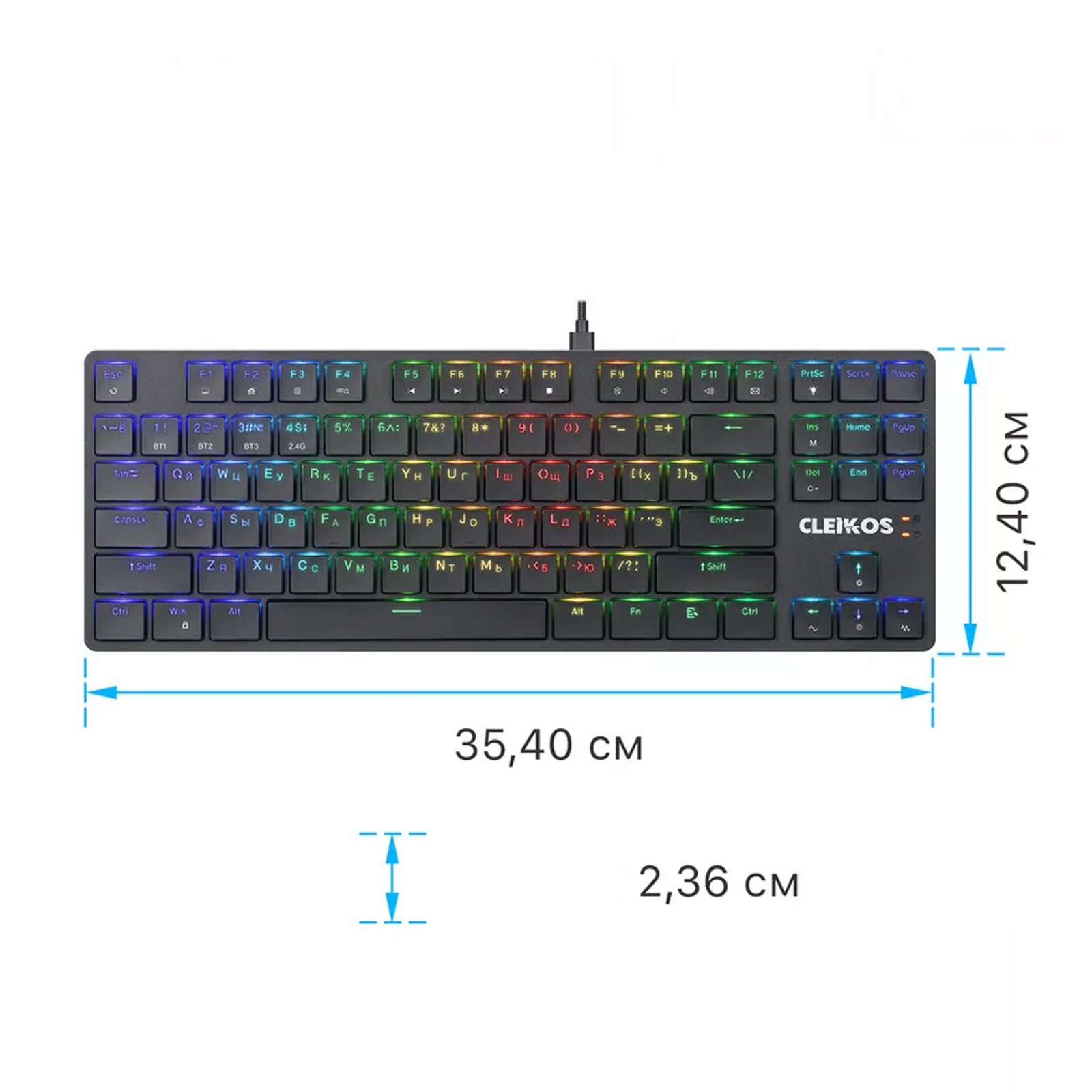 НИЗКОПРОФИЛЬНАЯ ИГРОВАЯ КЛАВИАТУРА CLEIKOS GK-135 МЕХАНИЧЕСКАЯ – BT – USB – БЕСШУМНЫЕ ВЫХОДНЫЕ КОРИЧНЕВЫЕ ПЕРЕКЛЮЧАТЕЛИ OUTEMU – ПОДЗАРЯЖАЕМАЯ СВЕТОДИОДНАЯ RGB