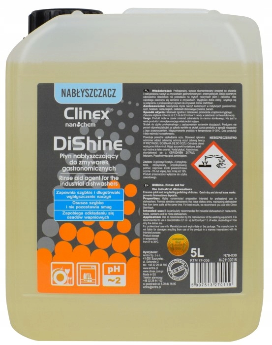 Clinex DiShine 5L - Концентрированное средство для ополаскивания и полировки посуды.