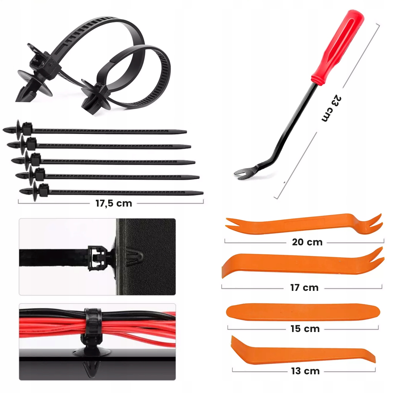Автомобильные зажимы изготовлены из твердого и прочного пластика и доступны в 16 универсальных размерах, подходящих для большинства моделей легковых автомобилей и легковых автомобилей. фургоны для доставки. Они надежно закрепляют различные типы элементов.