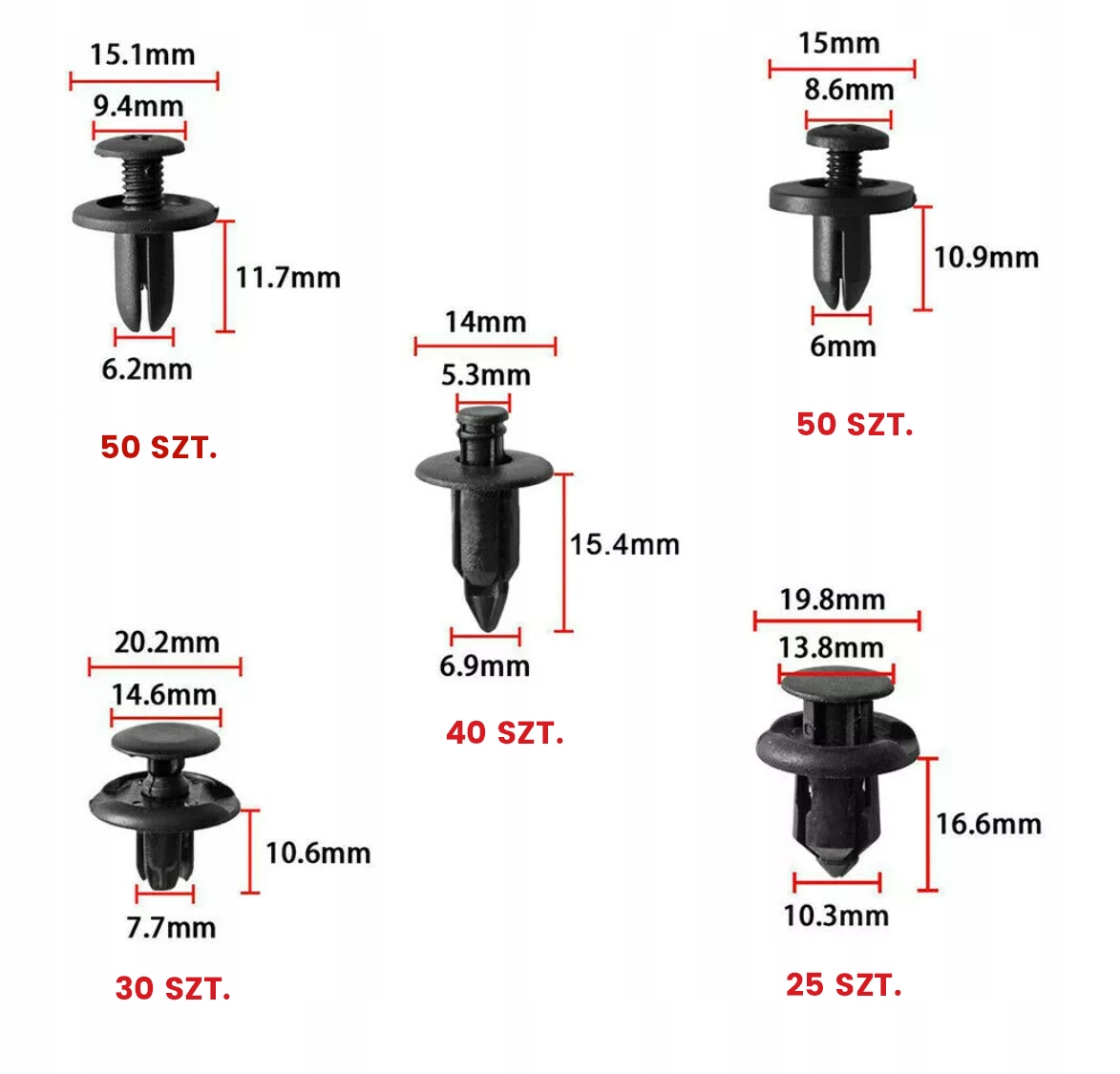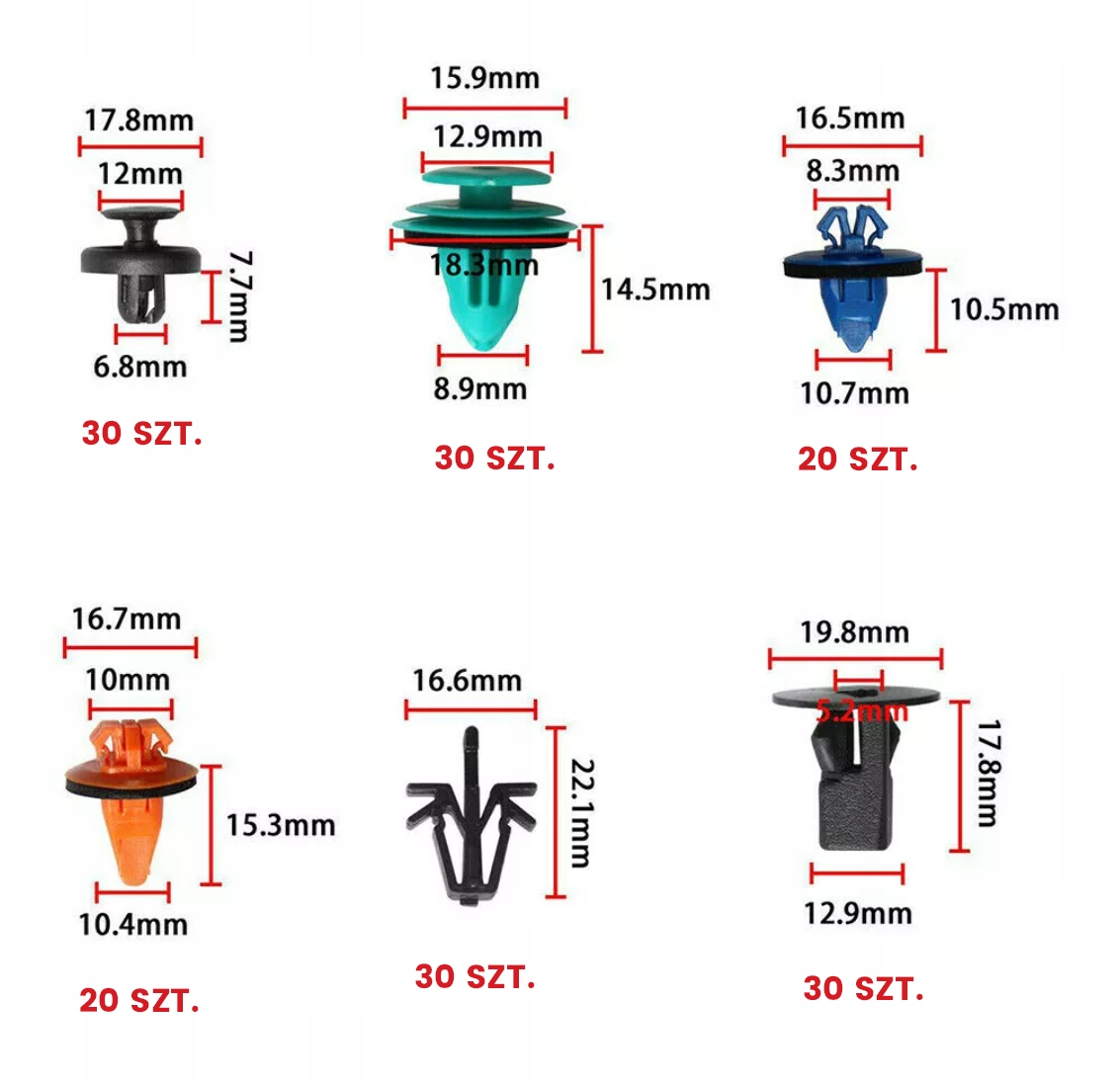 CLIP PINS CLIPS АВТОМОБІЛЬНІ ДЛЯ ОБбивки 635 шт