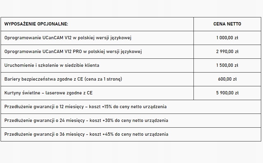 - Программное обеспечение: ucancam v12 в версии польского языка (опция)