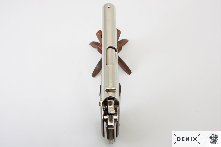 Прекрасная, очень реалистичная копия культового американского правительственного пистолета .45 M1911A1, США, 1911 год, использовавшегося во время Первой и Второй мировых войн известной компанией Denix.Реплика не содержит каких-либо существенных частей оружия, и ее невозможно переделать в огнестрельное,