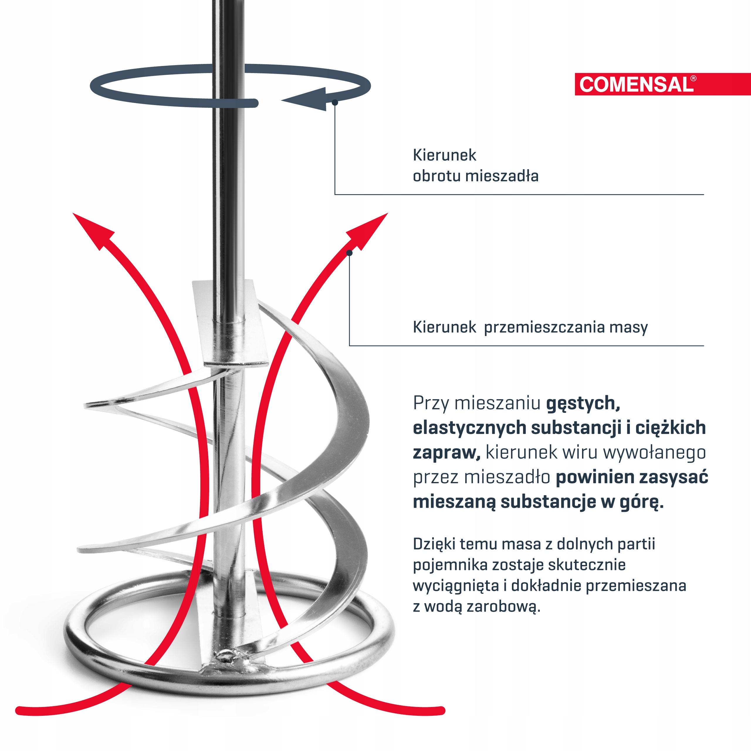 - Предназначение: Массивная спиральная мешалкаот COMENSAL для тяжелых строительных растворов.