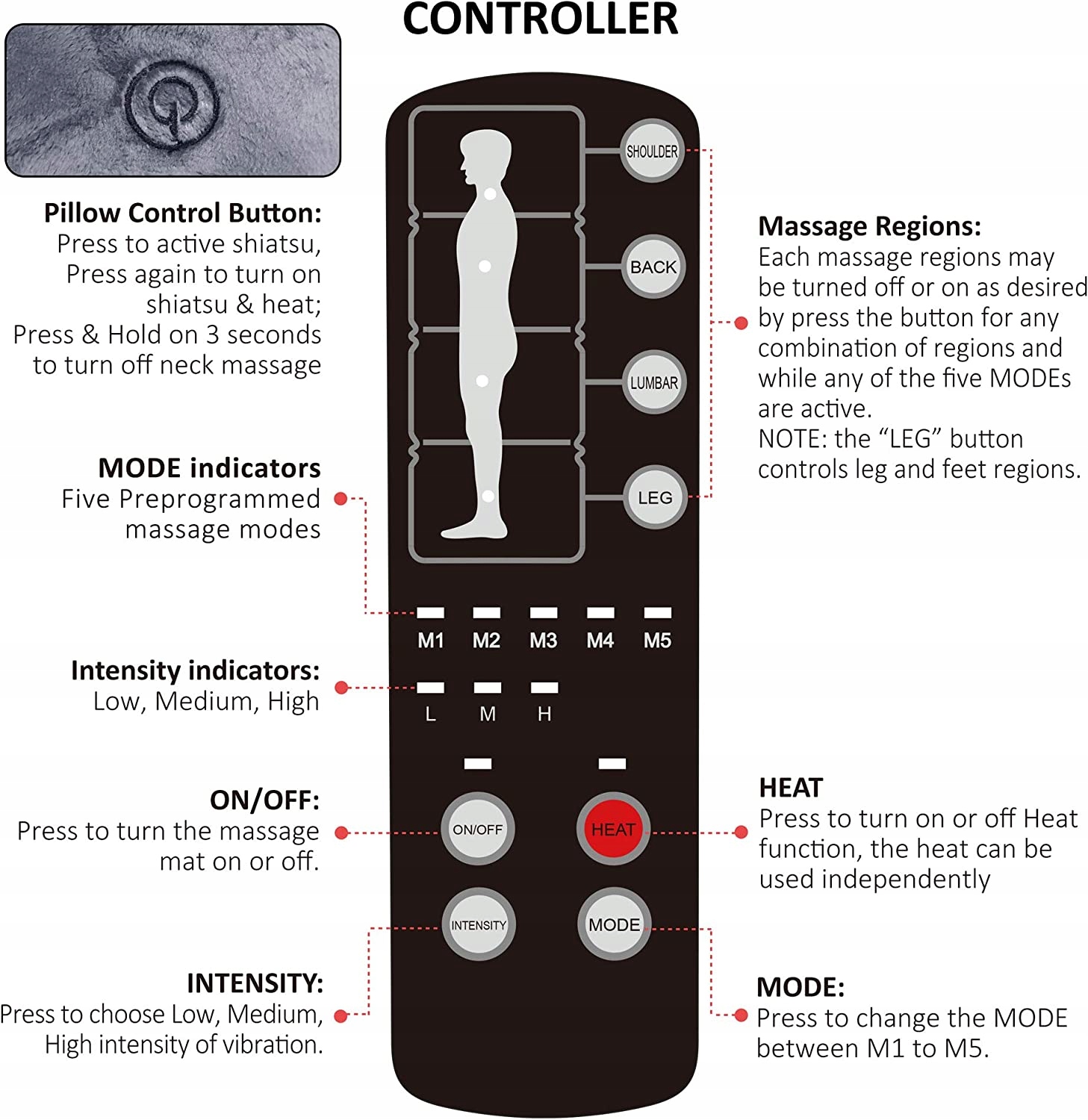 ПРИМЕЧАНИЕ: массаж шиацу с разогревом шеи, массажная подушечка с вибрационным нагревом от плеча до ноги. НЕ ПОКУПАЙТЕ, если вам нужен полностью глубокий массаж шеи и спины шиацу. Массажер для шеи шиацу. Комфортный массажный коврик поставляется с подвижной массажной подушкой для шеи шиацу. Его можно использовать отдельно для массажа шеи, плеч, спины, поясницы, ног и т. д. любой части тела. Массажер Шиацу с вращающимися нагретыми шариками успокоит напряженные и болезненные мышцы. Входящий в комплект клапан обеспечивает более нежный массаж. Вибрационный массаж. Массажный наматрасник с 10 вибромоторами обеспечивает успокаивающий массаж тканей и мышц от плеч, верхней/нижней части спины до ног, обеспечивая полное расслабление тела. С 5 режимами массажа и 3 уровнями интенсивности, 4 селективными массажными зонами для удовлетворения ваших лучших потребностей. ?Дополнительный подогрев. Удобный массажный коврик с подогревом имеет 4 грелки для всей спины, бедер и ног, которые обеспечивают успокаивающее тепло для дальнейшего облегчения мышечных болей и улучшения кровообращения. Нагрев может работать без массажа, грелка с функцией автоматического отключения и системой защиты от перегрева может обеспечить безопасное использование. 🔥Высококачественный мягкий плюшевый материал обеспечивает тепло и комфортное прикосновение к телу. Поместите подушку массажного кресла Comfier на диван, кресло, диван, пол или кровать, чтобы насладиться максимальным комфортом дома или в офисе. Идеальный подарок на Рождество или день рождения для мамы, папы, мужчины или женщины.