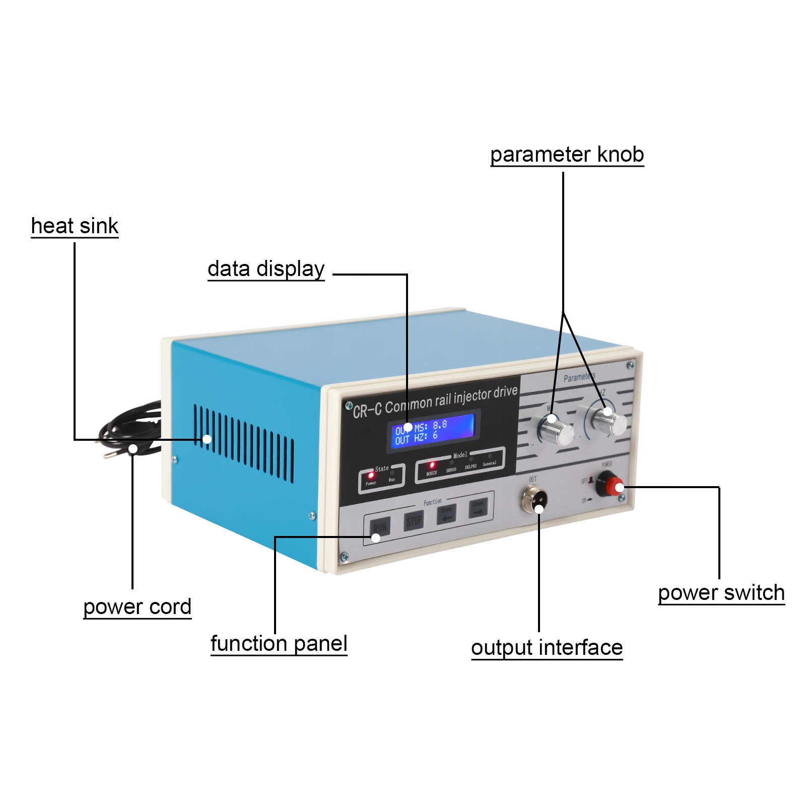 Простота эксплуатации: Функциональная панель оснащена кнопками настройки параметров форсунок различных марок (BOSCH, DENSO, DELPHI), что облегчает его эксплуатацию. Просто подключите его к стандартному тестеру форсунок, и вы сможете протестировать форсунки Common Rail.