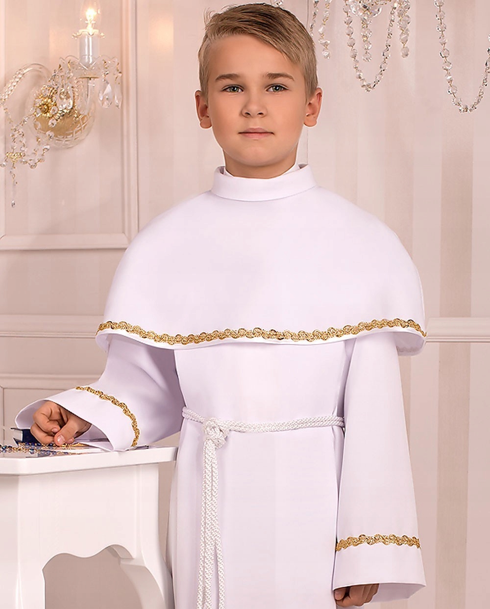 Гракьянский причастный альб, включая вышивку хозяина на накидке и завязку на талии, золотой или белый на выбор.