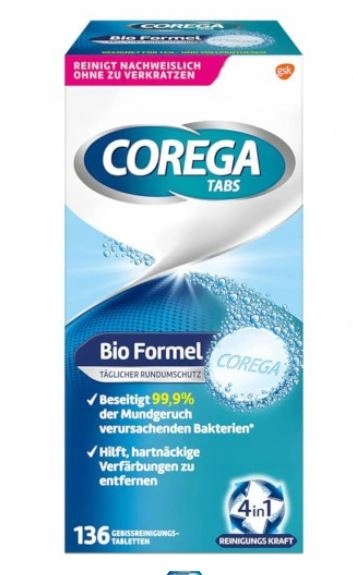 - Таблетки Corega Tabs Bio Formula обладают антибактериальными свойствами и помогают предотвратить накопление бактериального налета и зубного камня, а также связанное с этим раздражение десен.