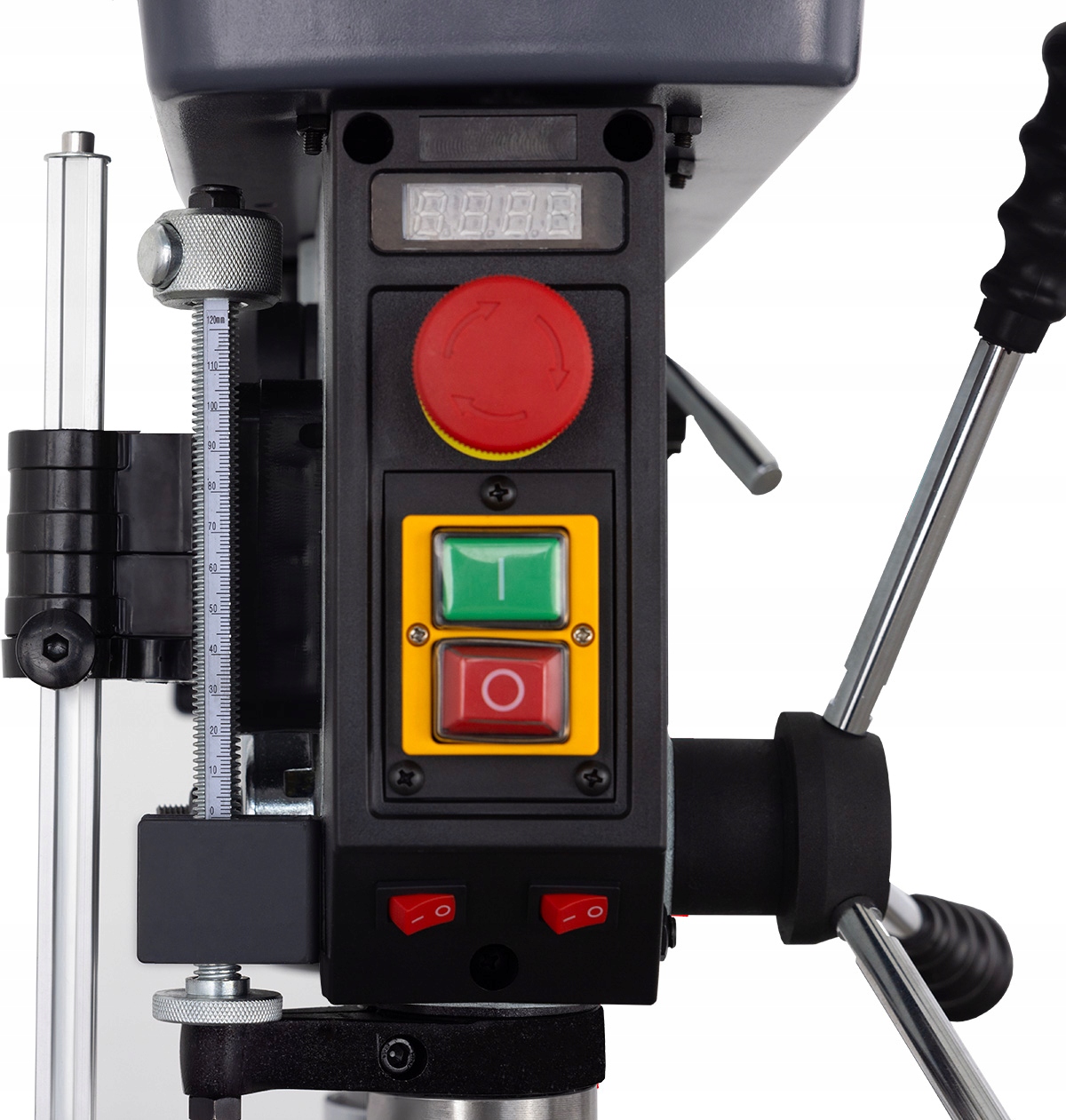 Сверло благодаря своей жесткой конструкции обеспечивает идеальное качество сверления. Наклонный стол позволяет выполнять широкий спектр обработки. Устройство оснащено электронным индикатором скорости и индикатором глубины сверления. В комплект входят тиски 100 мм