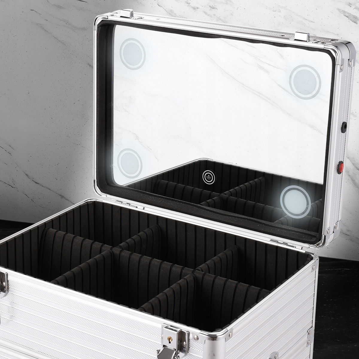 КОСМЕТИЧЕСКАЯ КОРОБКА-ЧЕМОДАН для лампы, лаков, косметики, СВЕТОДИОДНОГО ЗЕРКАЛА