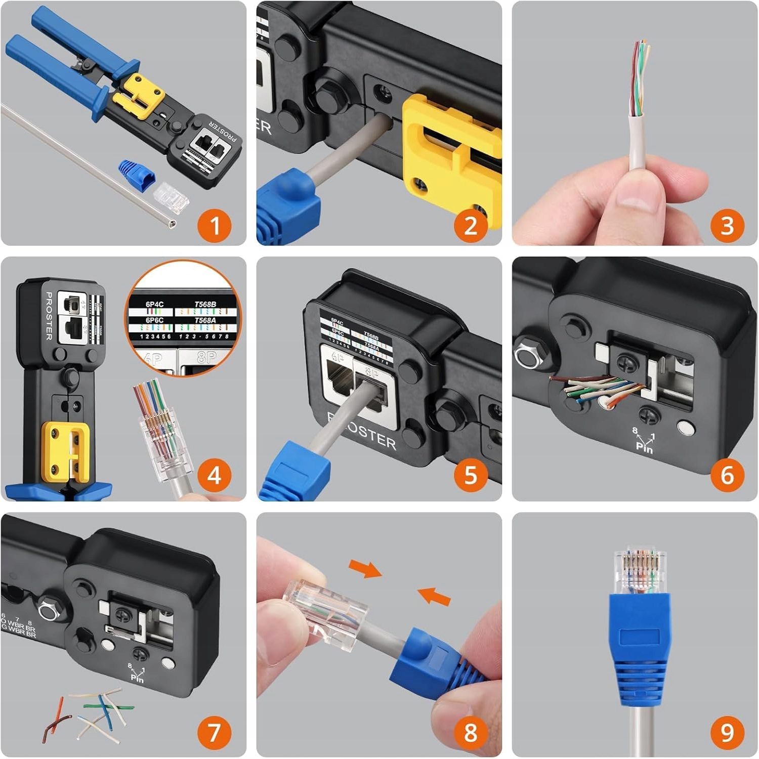 Профессиональный крейсерский зажим для заглушек RJ45, RJ12 и RJ11, идеально подходит для приложений LAN Network.