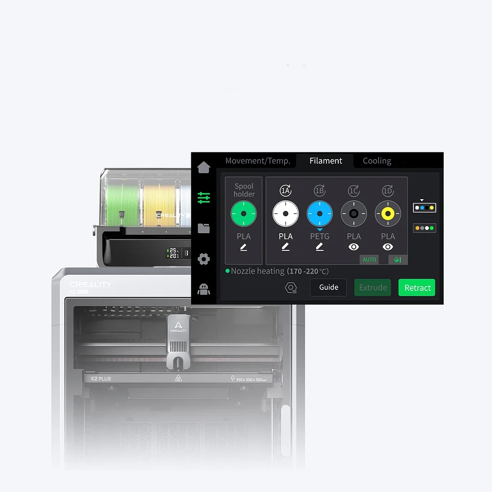 Автоматическое отображение нити: Система CFS готова к возможности легко использовать 3D -принтеры Creality и предоставлять печатные издания. Вы можете выбрать из выбранных волокон типа и цвета. Как показано в файле g-code