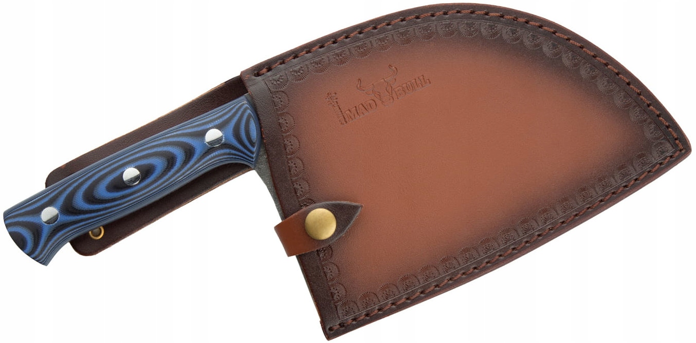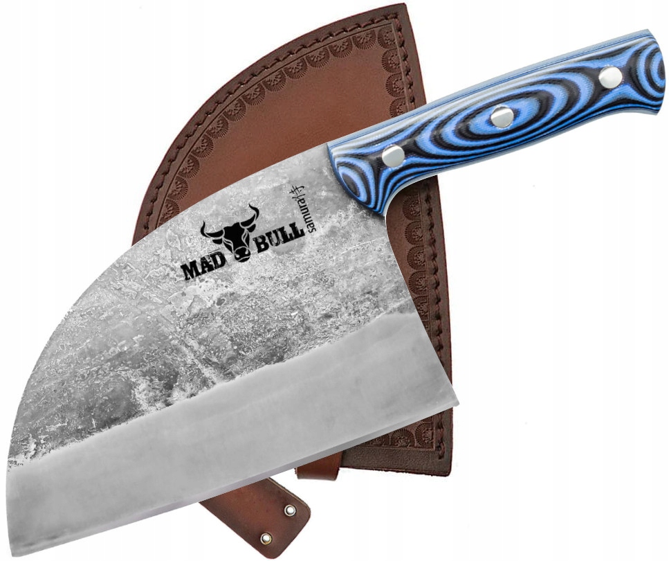 Mad Bull - это нож традиционного сербского шеф -повара , который выглядит как маленький нежный топор . Сильный очиститель с лезвием бритвы и выпуклым профилем идеально подходит для обрезки всего, как овощей, так и мяса. Кованое лезвие вручную обеспечивает жестокий и уникальный вид для каждого ножа.