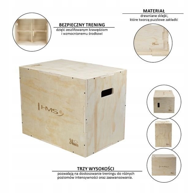 DSC01 HMS - это деревянная коробка, предназначенная для кросс -тренировок. Поворачивая сундук в разные стороны, мы можем получить три высоты и адаптировать их к уровню продвижения тренера.