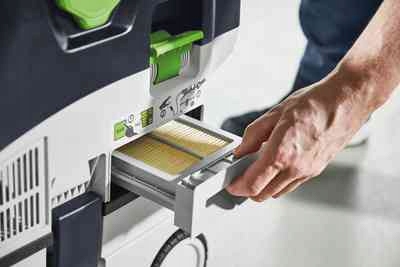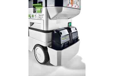 Прощай с пылью. Защита здоровья - также без модуля разъема. CTLC MIDI Compact Battery Cleaner любит пыль и идеально подходит для ваших инструментов Festool Battery. Не имеет значения, является ли это мобильным разрезом, шлифованием или бурением: компактный дизайн и небольшой вес делают его идеальным партнером на весь день. Благодаря этому вы также можете работать в пыли в системе батареи! Инновационная функция автоматического запуска технологии Bluetooth® и практического удаленного обслуживания обеспечивает превосходное сотрудничество с батарейным инструментом с очистителем вакуума. Наши батарейные пылесосы отличаются максимальной силой всасывания благодаря 36 В турбины с 2 18 В батареями. Здоровая работа над формой пыли L-класса. И, как обычно, все соединяется вместе: пылесос, гладкий шланг всасывания, инструмент батареи, элемент, позволяющий комбинации SSrytainer T-Loc. Благодаря этому система идеально подходит во всех отношениях.