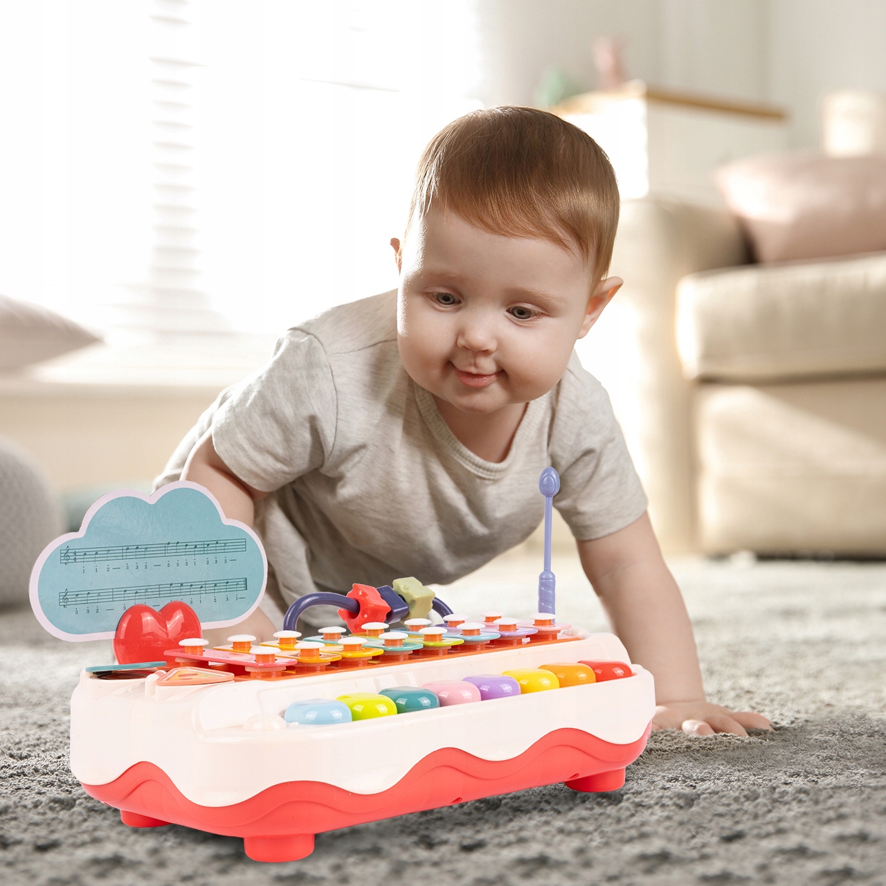 Во-первых, это можно использовать как традиционную тарелку с металлическими клавишами, на которой ваш малыш сможет играть различные мелодии. Это оказывает большое влияние на развитие слуха, зрения и осязания, а также развивает моторику и координацию движений малыша. При ударе по металлическим клавишам звуки чрезвычайно приятны для слуха, не слишком громкие и не мешают окружению. Кроме того, в комплект входят ноты, чтобы ваш малыш мог научиться играть определенные мелодии. Благодаря красочным кнопкам, напоминающим фортепиано, мы можем играть мелодии, не используя входящий в комплект стик