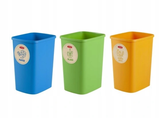 - 3 корзины бренда Curver из линейки ECO Friendly b>, предназначенный для сортировки мусора в домашних условиях.