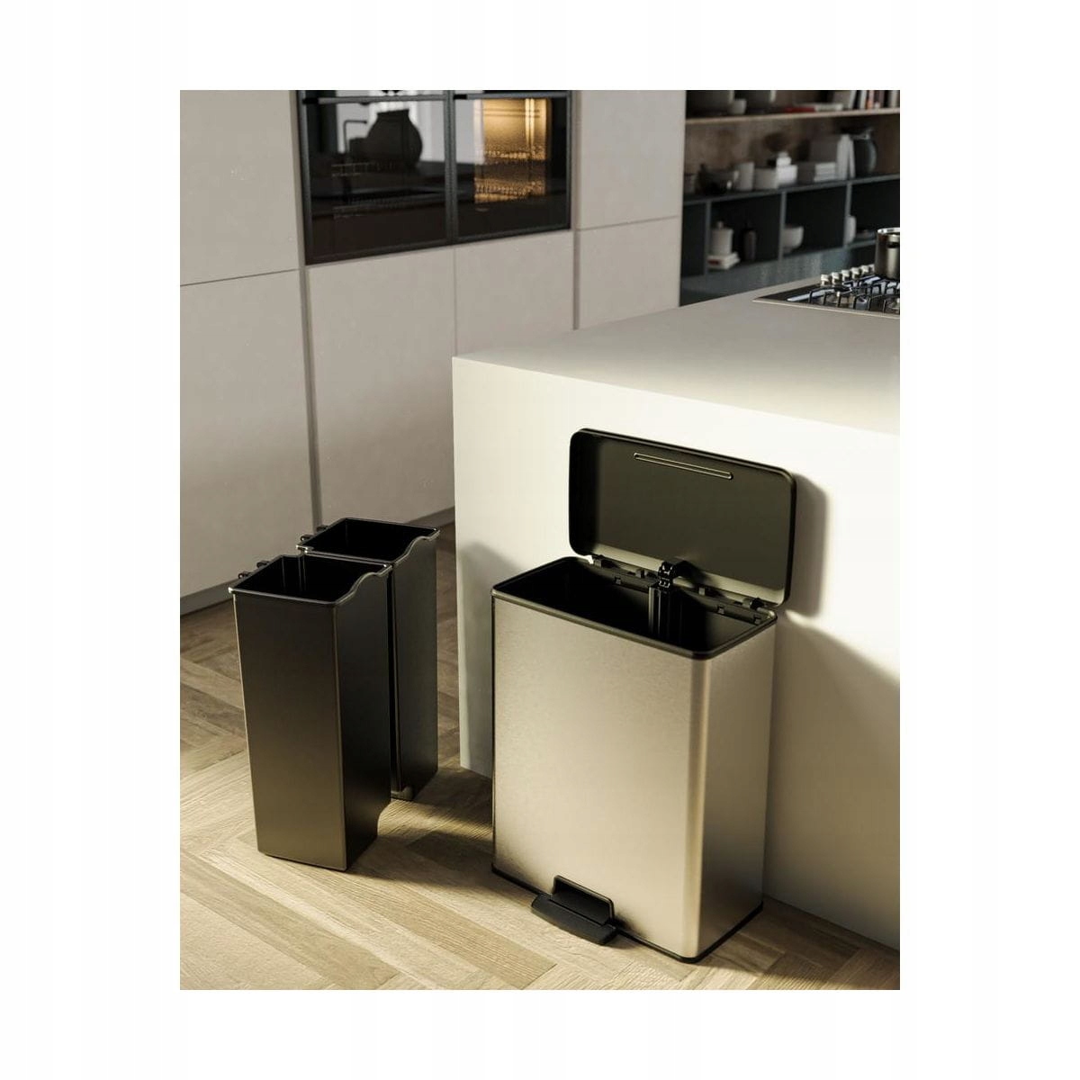 Функциональный контейнер для мусора, облегчающий поддержание чистоты. Бак открывается ногой с помощью специальной педали. Это позволяет поддерживать высочайший уровень гигиены и не пачкать руки. Конструкция крышки делает содержимое корзины постоянно закрытым и невидимым. Металлизированная поверхность станет элементом современного декора.