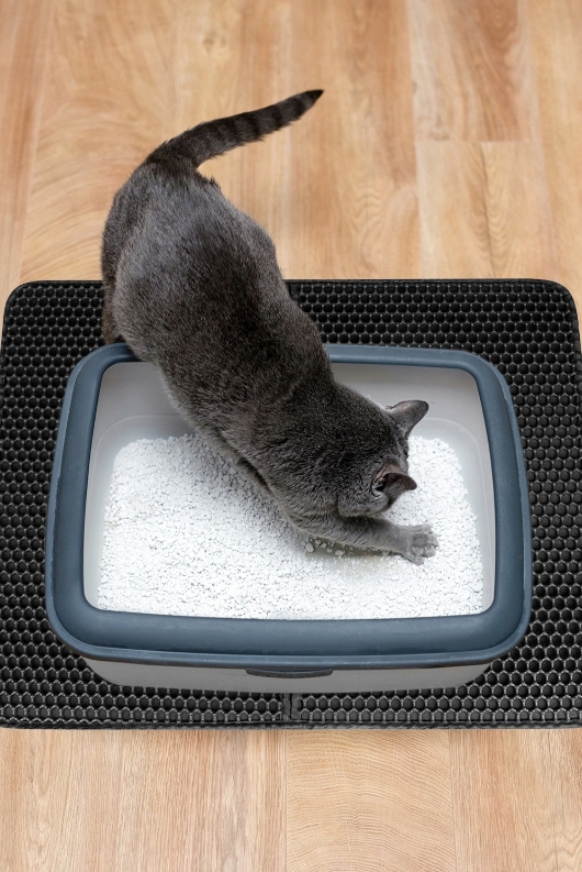 - Идеальный коврик для кошек под туалетным лотком и перед ним