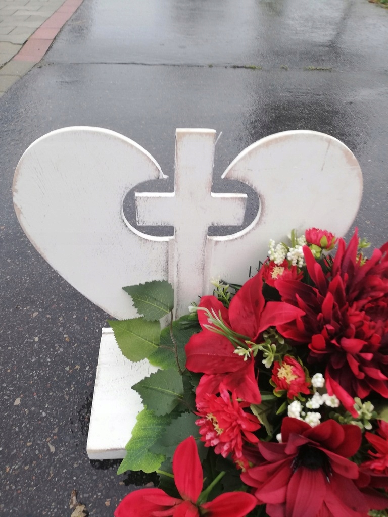 - основа – деревянная подставка с вырезанным крестом и сердцем