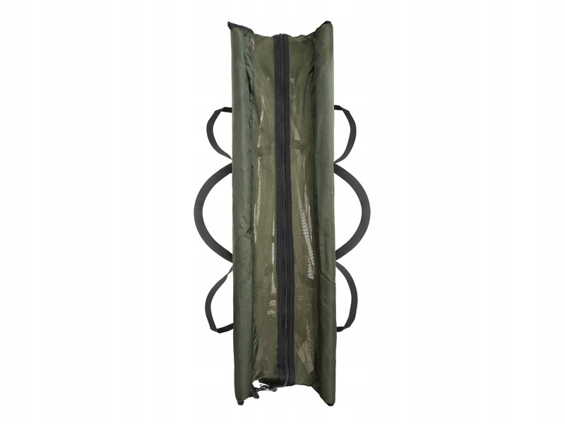 Сетка подкреплена двумя черными текстильными полосами, которые переходят в центральную ручку. Благодаря длинным ручкам, сумку можно легко повесить на вес. Сумка также имеет текстильные ручки с обеих сторон, чтобы облегчить подъем и перенос. Сплошная молния расположена с обеих сторон и наверху, что позволяет полностью распространяться CWS, чтобы удобно носить рыбу.