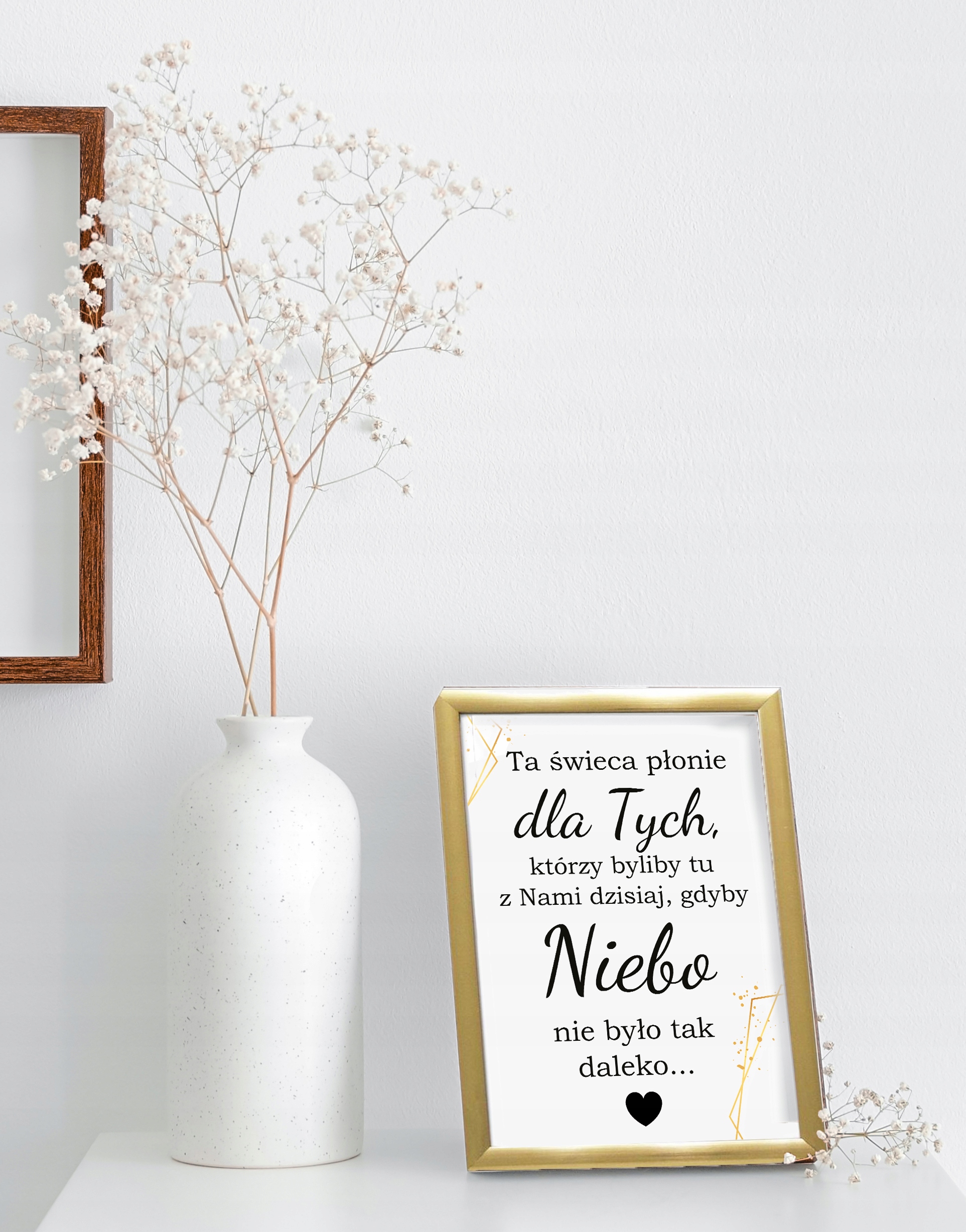 Прекрасное предложение, вспоминающее близких, которые умерли, но находятся в для наших сердец этот день особенный. Красивая золотая рамка, рядом с которой зажжена свеча.