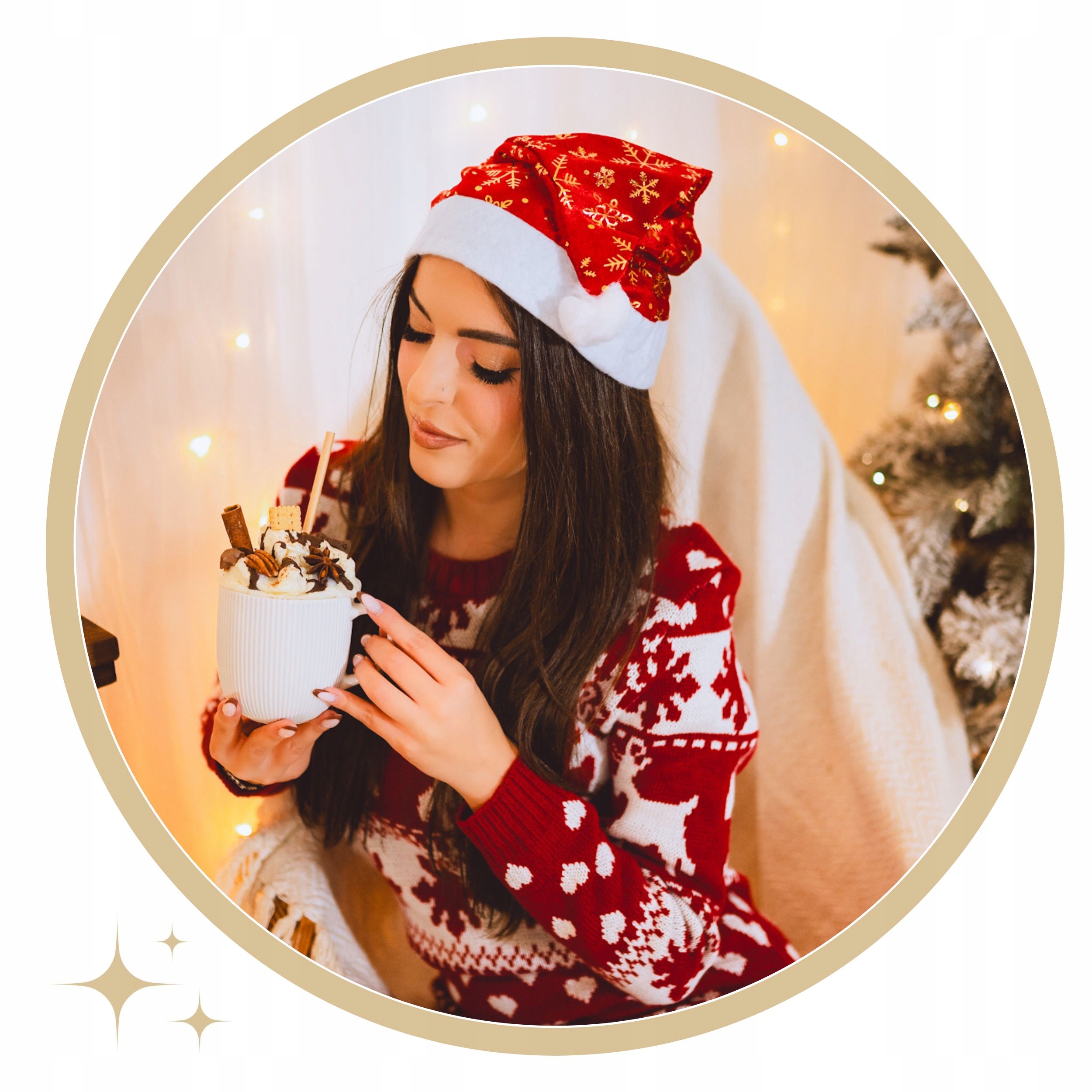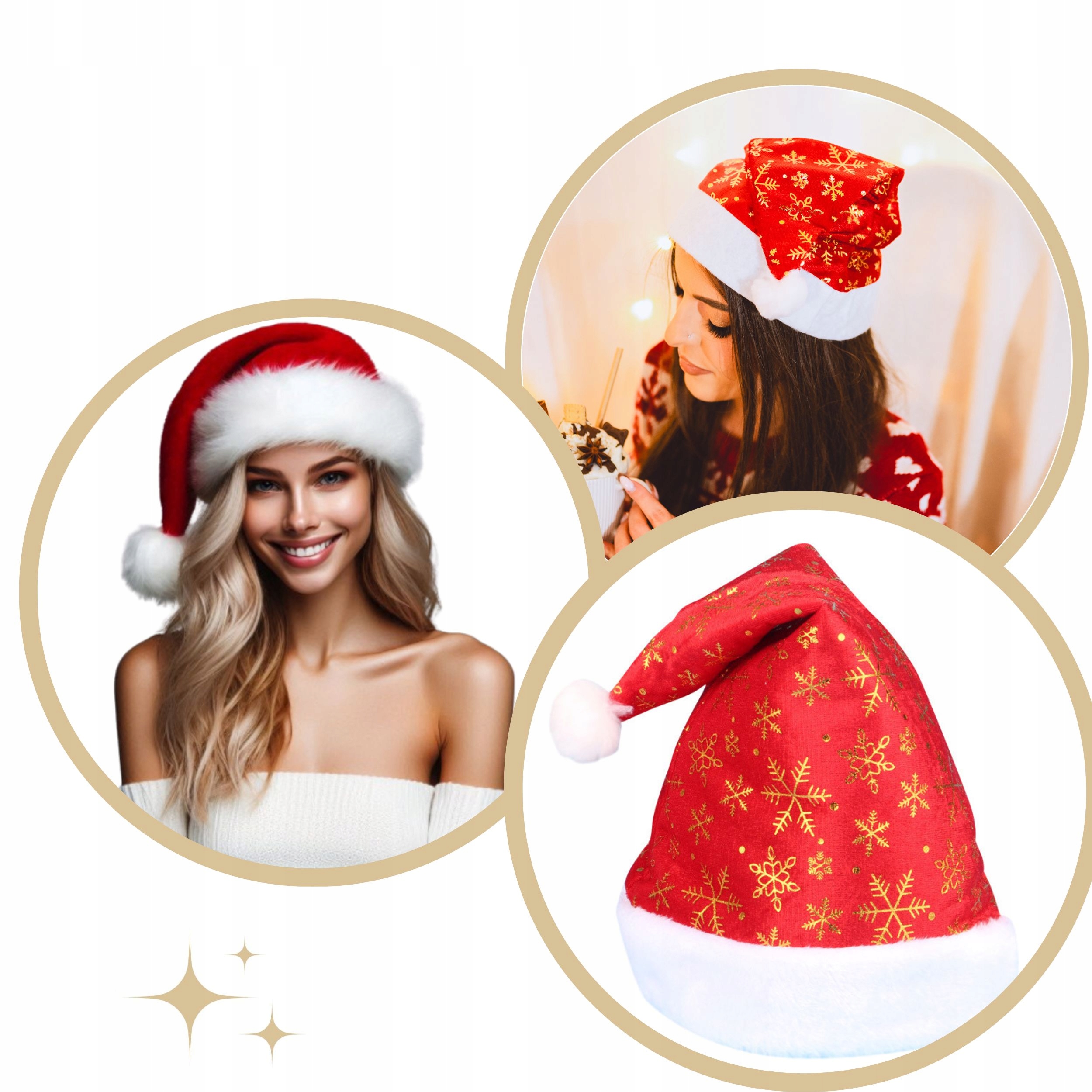 Czapka mikołaja NA MIKOŁAJKI z złotymi śnieżynkami ŚWIĄTECZNA na prezent