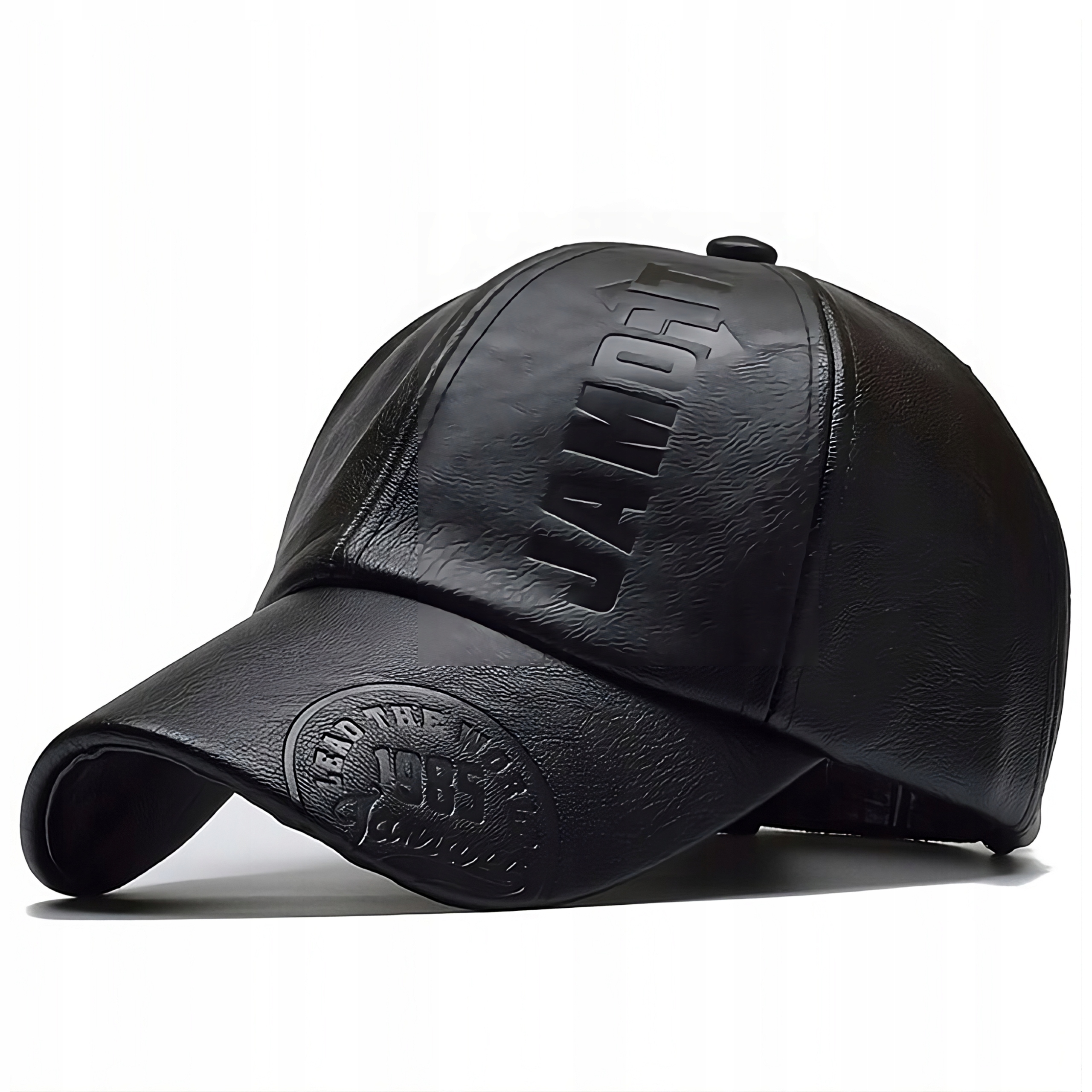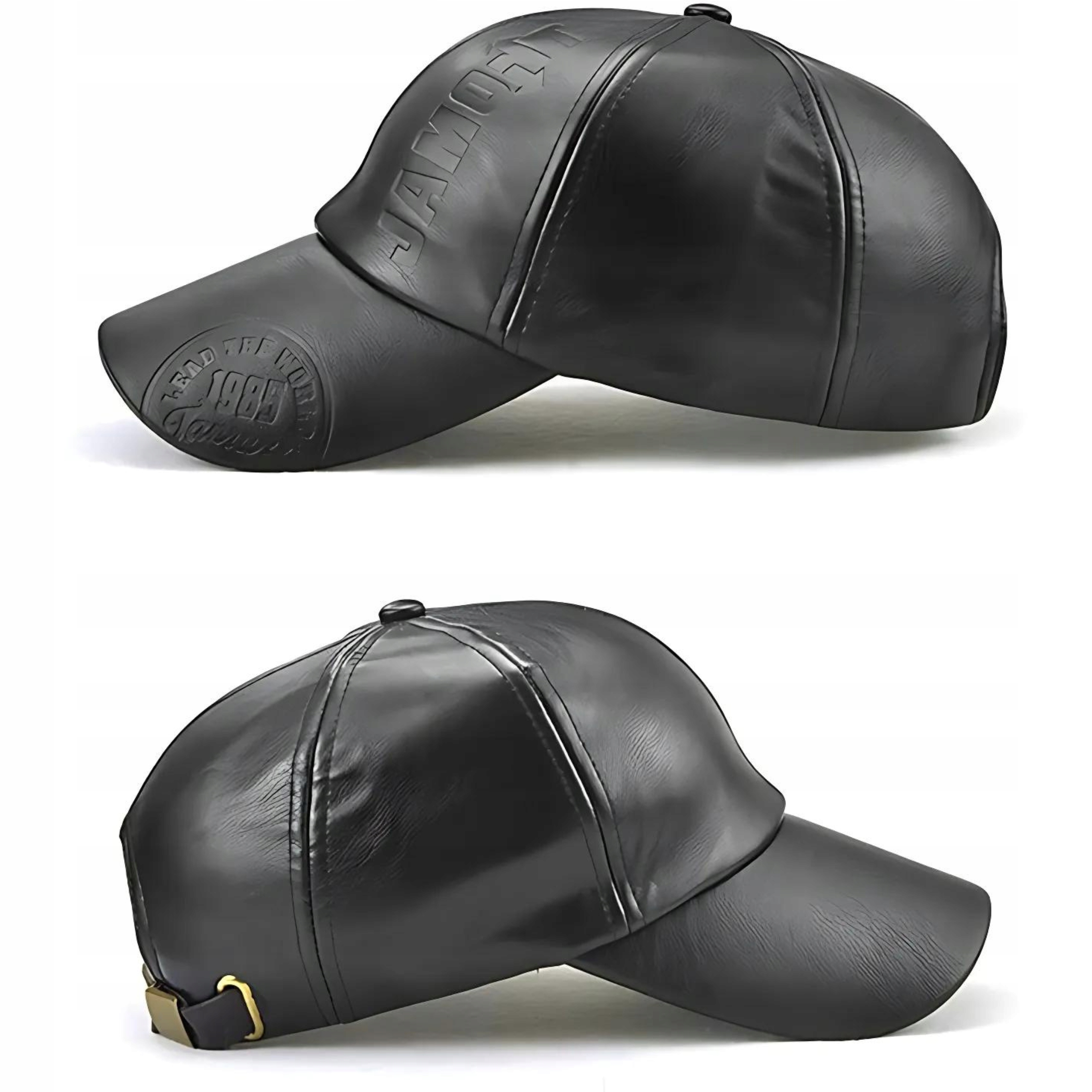 CZAPKA Z DASZKIEM JESIENNO ZIMOWA SKÓRZANA BEJSBOLÓWKA MĘSKA SKÓRA CZARNA