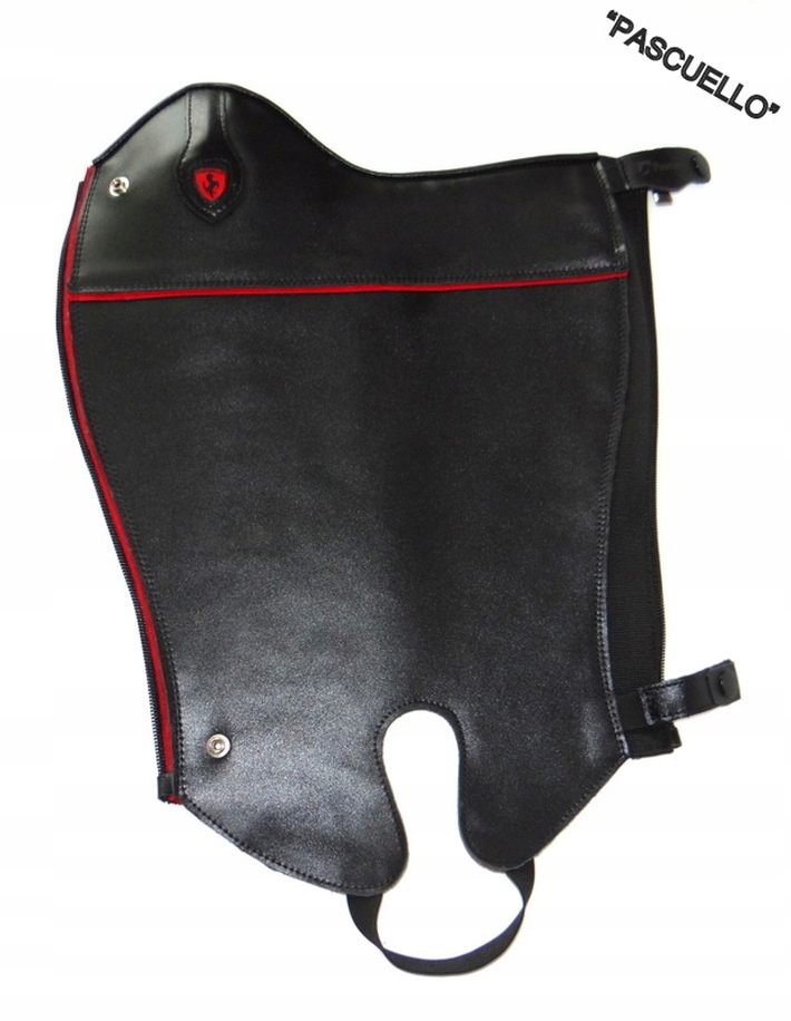 Chaps, изготовленные из натуральной зерновой бычьей кожи, манжета также изготовлена из коровьей кожи, Gat.1 на задней вставке с упругой резиной (растягиванием до 1 см), прикрепленной к молнии, в верхней части Czapsa не хватает кожи.