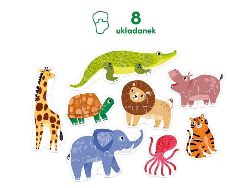 - 🧩 Набор - 8 пазлов, всего 29 элементов (от 2 до 6 пазлов в каждом)🐯 Тематика - дикие животные из разных уголков мира