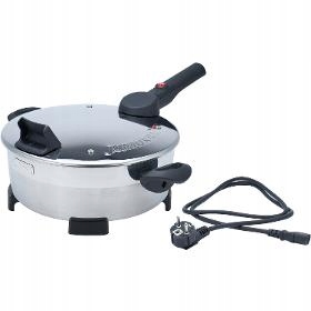 Электрический горшок для приготовления и выпечки, мощность 580 Вт, электрический, керамический, индукционный и газовый нагрев, емкость до 4 л, крышка для выпечки с выключателем, стеклянная крышка, даже распределение тепла. Тритал-алюминиевая, ферритная и хромированная нержавеющая сталь, пластик.