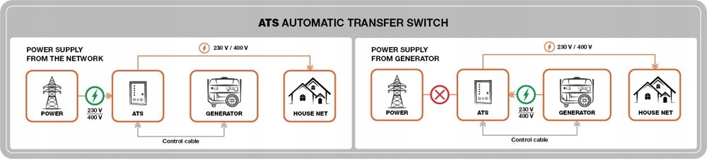 Модуль автоматизации, также вызываемый ATS (автоматический переключатель передачи) или SZR (резервный переключатель), используется для автоматического переключения источника питания между основным и резервным источником.