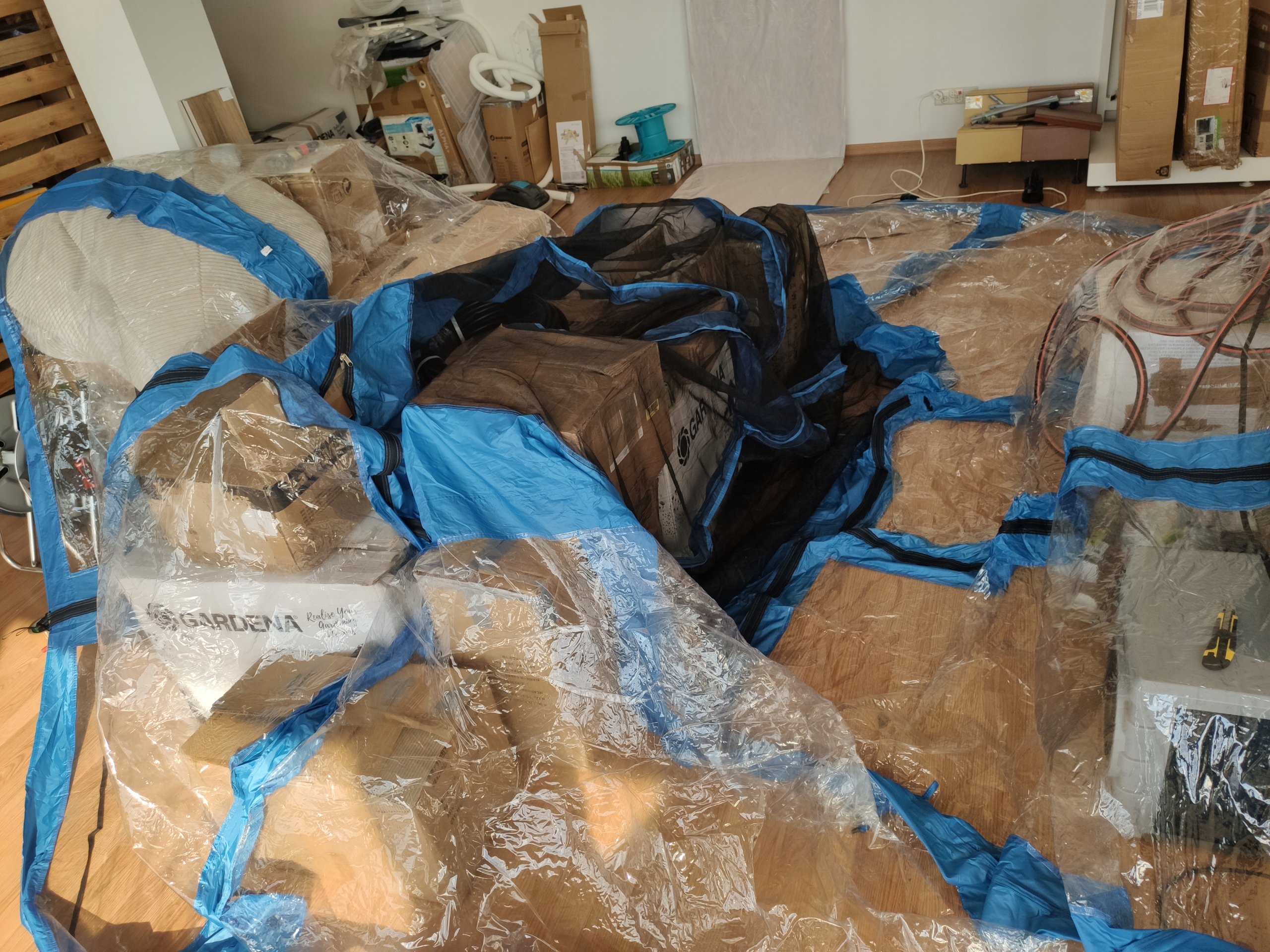 Комплект поставки: 1 крыша для бассейна Steinbach / для бассейнов диаметром до 400 см / размеры: 500 x 433 x 250 см (Д x Ш x В) / водяной столб 1000 мм / с боковыми натяжениями, грунтовыми анкерами и тремя дверцами на молнии.
