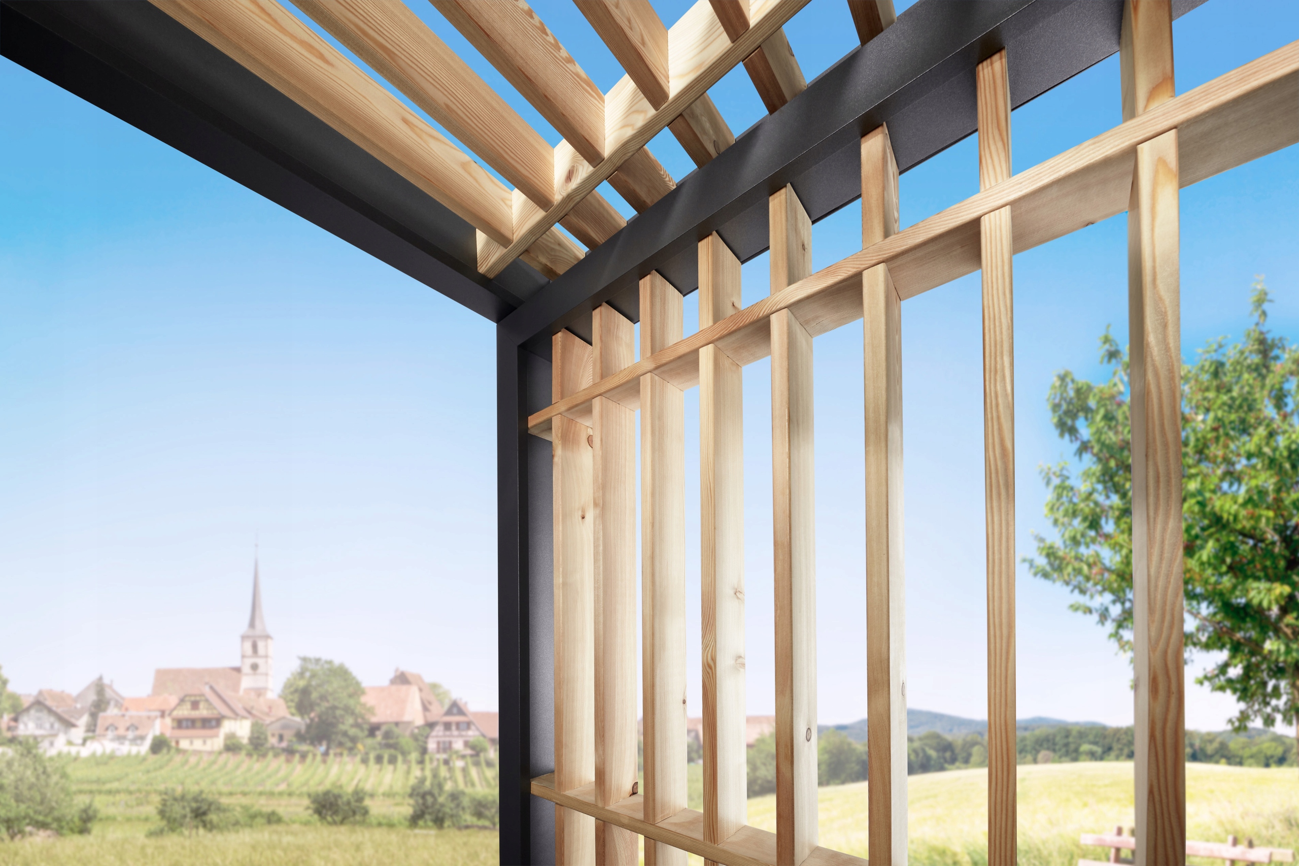 Алюминий использовали для требующих погодных условий. Это гарантирует, что материал не ржавеет, навсегда устойчив к ветру, погоде и солнечному излучению и обеспечивает идеальный вид в течение многих лет использования. Благодаря алюминию высокая стабильность сочетается с низким весом - для легкой работы, закупориваемого прикрепления к фасаду и несложной быстрой сборки. Установка элементов к твердой стене всегда включены. Алюминиевая рама в сочетании с деревом обеспечивает эксклюзивный вид древесины BS.