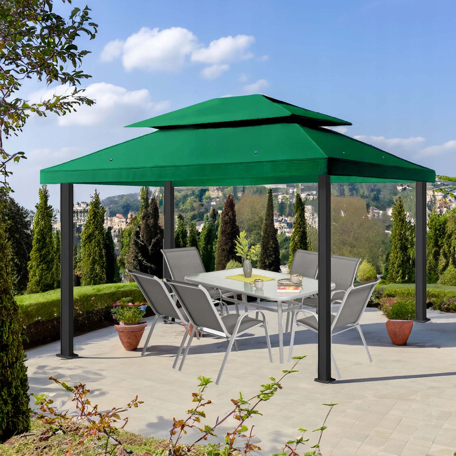 Сплошная перспектива и качество немецкой ПВХ 100% водонепроницаемый !! Непрерывный полиэстер, очень сильный, они используются для шитья, среди прочего, морских парусов, которые имеют угол в силе ветра; Они сшивают в углах, благодаря им это может прикрепить весь павильон дополнительным кабелем, например, к земле, на которой стоит ваш павильон. Эти отверстия предотвращают формирование такого называемого «Эффект воздуха»