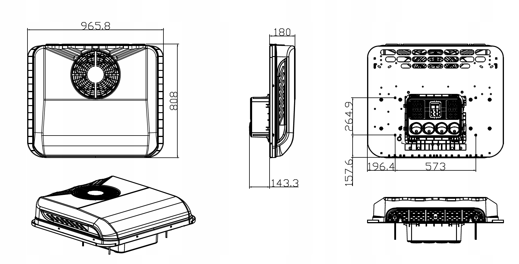 Кондиционер прост в использовании, имеет чрезвычайно тонкий и компактный дизайн (высота 18 см). Кондиционер CoolPro 2800C прекрасно подходит для установки как на место люка размером от 420х340мм до 900х600мм., так и на крыше после вырезания установочное отверстие минимальных размеров: 420х340мм.