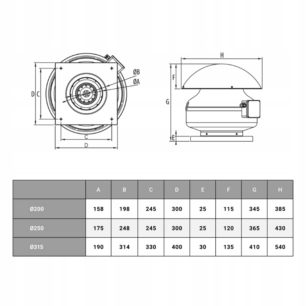 КРЫШНОЙ ВЕНТИЛЯТОР 250FI ЭНЕРГОЭФФЕКТИВНЫЙ 1650м3/ч DOSPEL